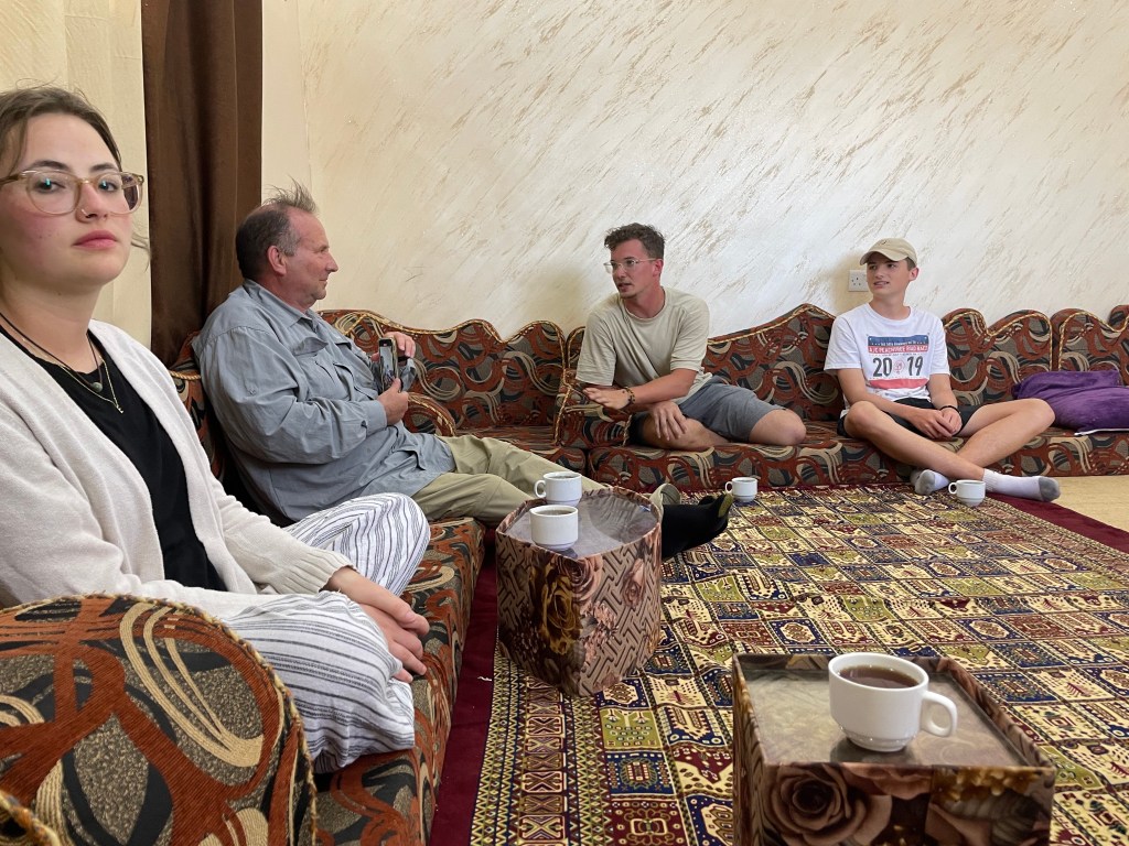 We had to meet our host along the way so that he could lead us into the desert to our camp. We met him at a “coffee shop” that looked like an abandoned roadside fruit stand. He approached our car and spoke to us through the window, “before I take you to camp we will go to my house to have tea with my family.” After driving off road through the desert we came to his home in a small desert village. There we were, five Americans sitting in the home of a Jordanian family we had not met until 15 minutes earlier, being treated as family. Through our teammate who spoke Arabic, we spent time getting to know them a little. They were incredibly kind, trusting and welcoming. But to take it another level, the next morning after our night in the desert, he took us back to his home for more tea. This time we were there for even longer. Now that we were “old friends”, we had the most incredible conversation about life, our different cultures, family and our different faiths. His family is Muslim. At one point I told him how honored we felt to be welcomed into his home and treated so well. His response was simple, “How can I say that I have a God who loves me, if I don’t treat you with the same kind of love.” Wow. Then like in our other encounters, he wanted to stay for dinner.